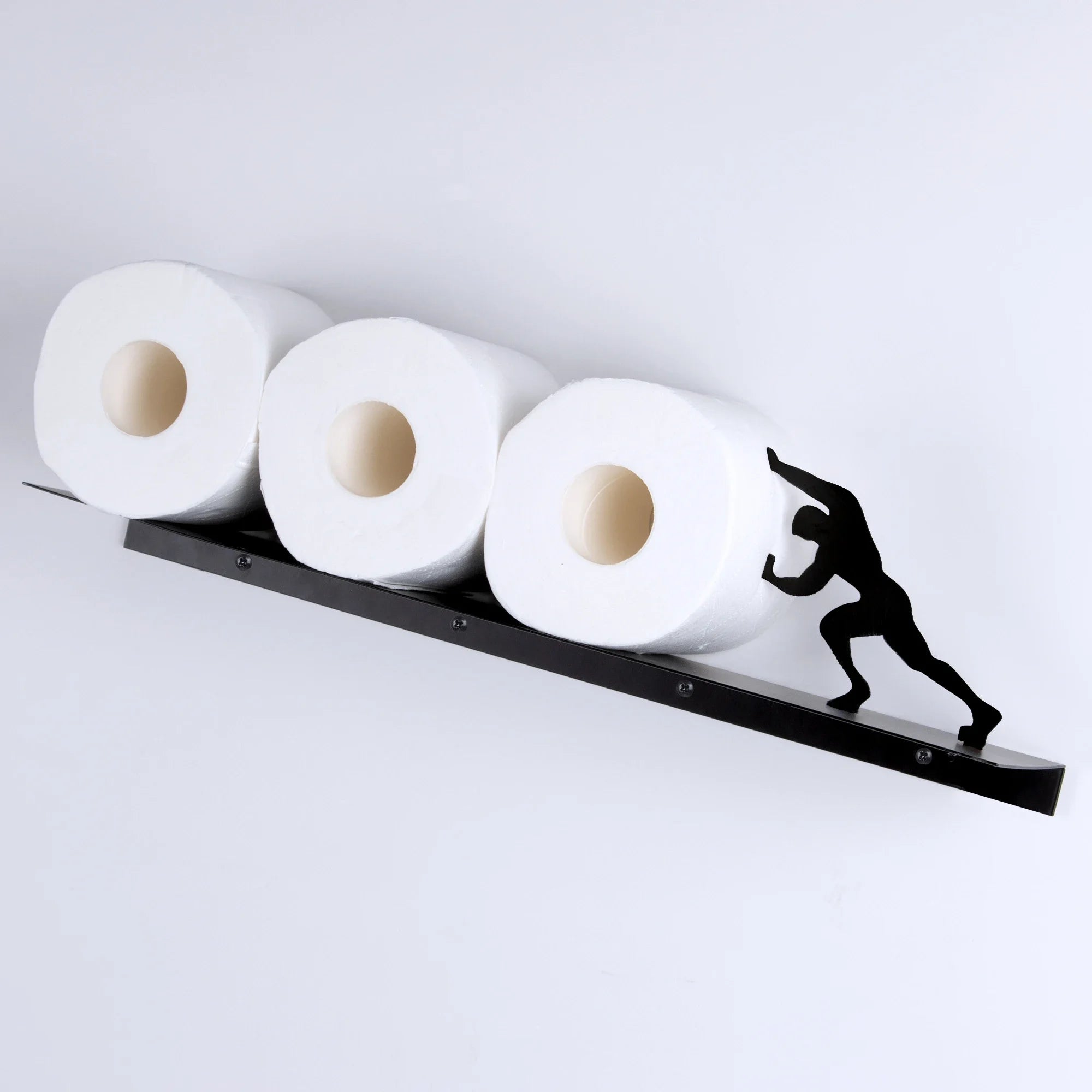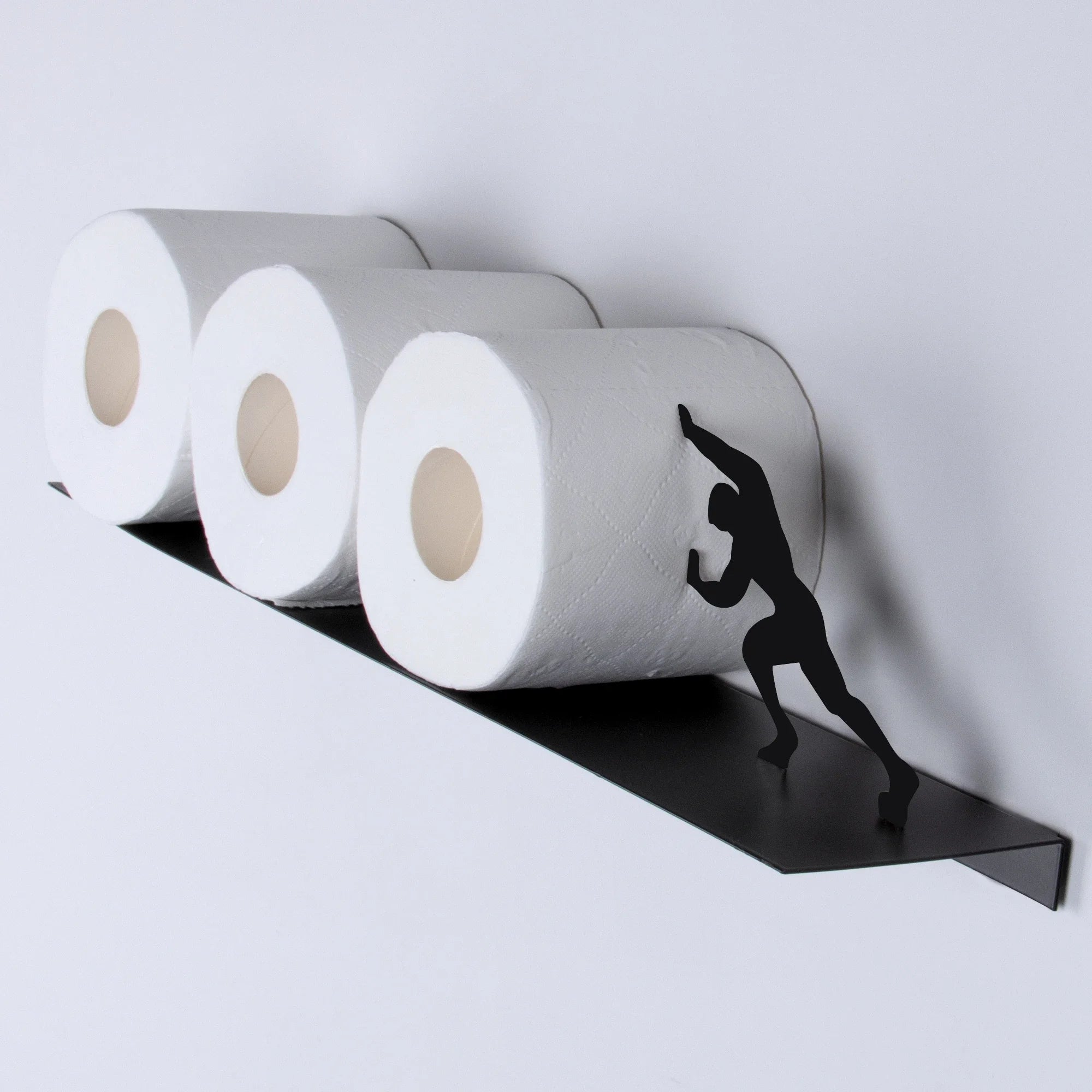 Rolls of Strength™ is a sculptural toilet paper holder that transforms your bathroom into a conversation starter. Featuring a minimalist strong-man silhouette “pushing” your rolls into place, it blends humor with modern design - functional art that doesn’t try too hard.