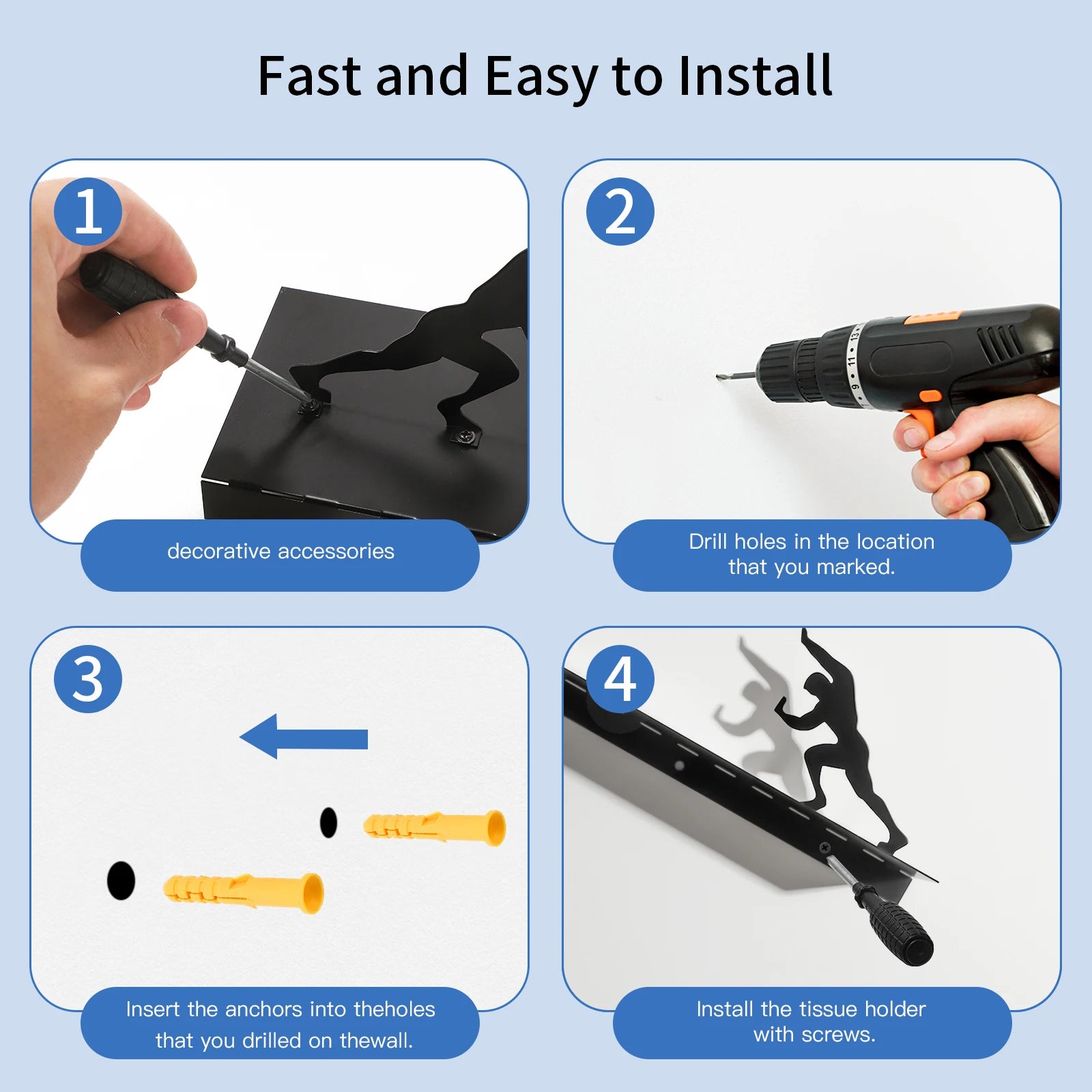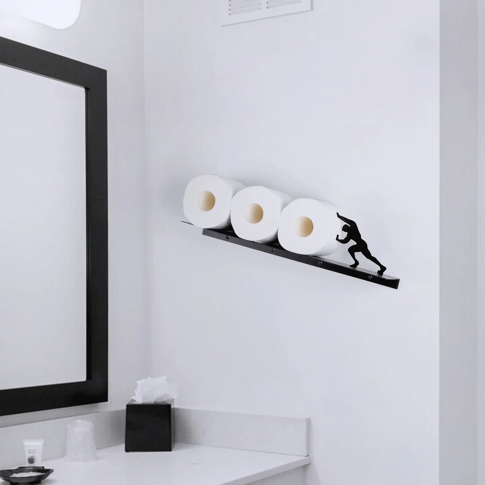Crafted from durable metal with a sleek matte finish, it’s built to hold multiple rolls securely while adding personality to your wall. Whether you install the figure on the left or right, it adapts to your space effortlessly.
