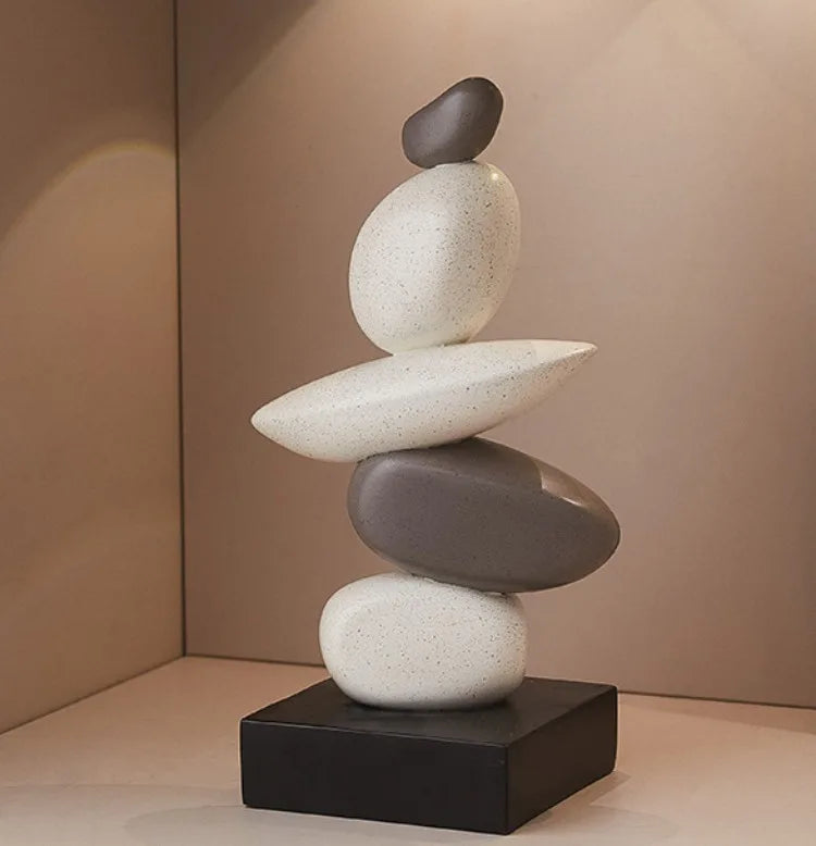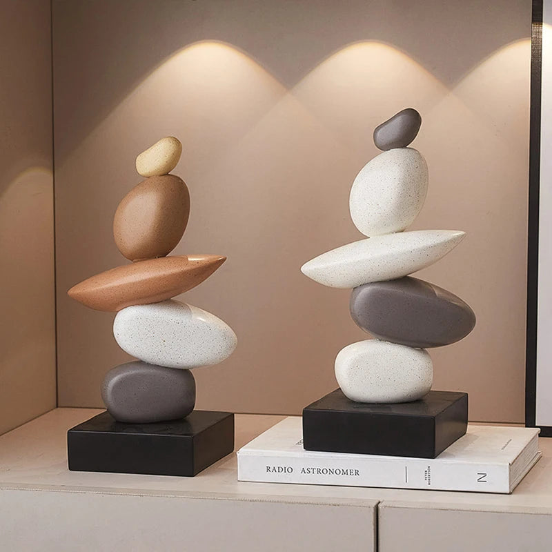 Crafted from durable resin and designed to mimic the balance of hand-stacked river stones, this artistic piece is both minimalist and grounding.