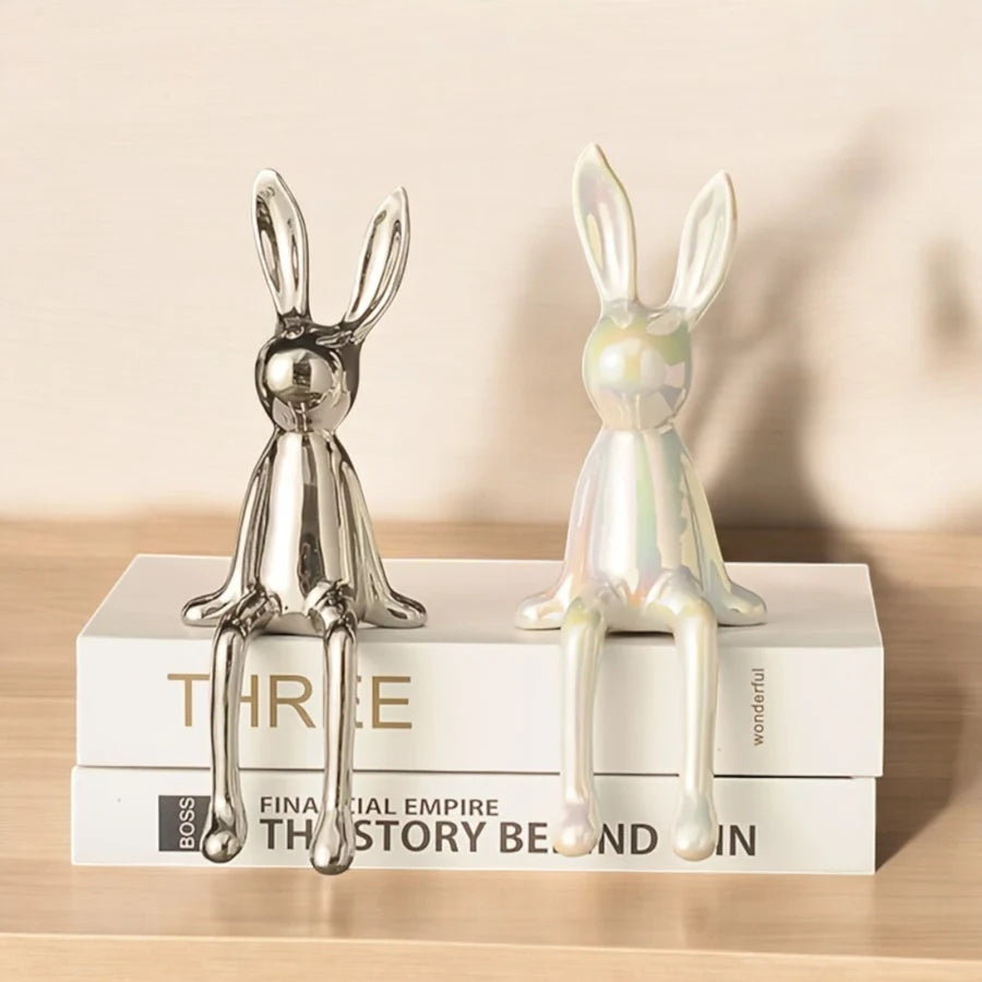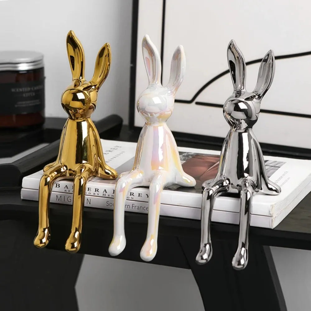Meet your new favorite shelf companions! Bunny Bling™ is a dazzling trio of sitting bunny sculptures in gleaming gold, chrome silver, and pearlescent white. With their playful poses and glossy ceramic finish, they bring instant charm and a splash of luxury to any space, whether on bookshelves, desks, or window sills.