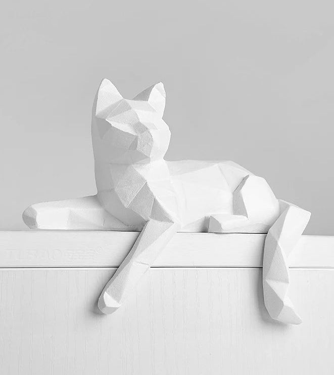 Add a dose of cool to your décor with this sculptural cat duo. Featuring clean geometric lines and a minimalist aesthetic, these lounging felines drape effortlessly over shelves, bookcases, or console edges.