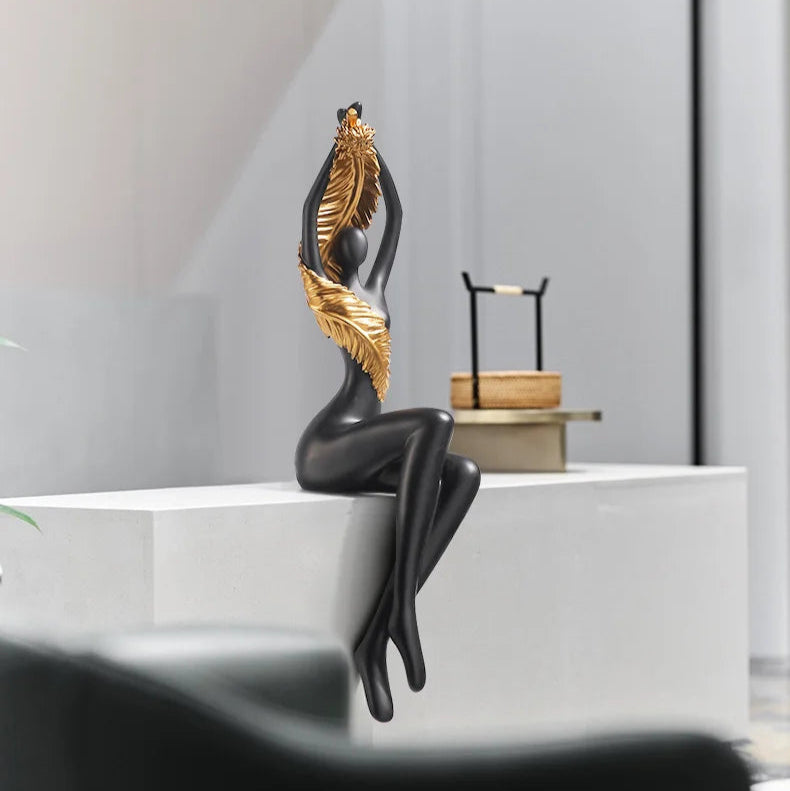 Elevate your space with Leaf of Elegance™ - a striking sculpture of graceful femininity wrapped in shimmering gold. Crafted in a sleek matte finish, this abstract figure sits effortlessly on any edge — shelf, console, or dresser — making it a versatile and captivating decor piece. The flowing golden leaf detail brings a touch of luxury and symbolism, representing growth, poise, and inner strength.